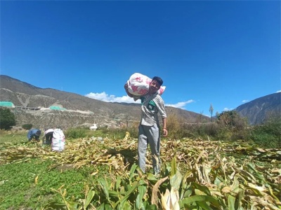 乡间田野,满地流“金”,色彩斑斓的田园与坐落其间的藏房相映成趣,绘出了一道道壮美的秋收画卷。农民是这画卷中最灵动的部分,辛勤劳作中的欢声笑语,宛如一串串美妙的音符,奏响明快的秋之音律。