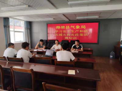 9月6日,得荣县气象局组织全体职工干部,认真学习了《安全生产和防灾减灾救灾等相关政策法规知识汇编》(第四期)。牟莉局长详细传达了该文件的具体内容。