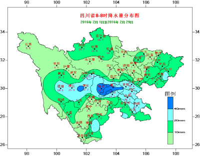 【摘要】2月全省平均气温7.1℃,较常年偏低0.2℃,降水17.0毫米,偏多20%,为历史同期第12多位。2月内全省平均雨日5.7天,为历史同期第11少位。盆地春节后出现区域性寒潮,降温幅度较大,9县站日最低气温突破历史同期极小值。2月高原出现大到暴雪,多站降雪量突破历史同期极值。
