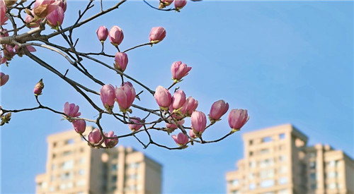 内江兰桂大道玉兰早开 趁晴速赏