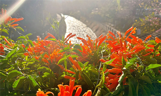 炮仗花花期在春季一般从1月左右开始绽放,一直到5月后才慢慢结束,而攀枝花得天独厚的阳光资源和气候优势较其他城市相比,花期也更早,从12月份便会陆续绽放,为攀枝花添上一抹靓丽色彩。图片于2024年1月1日拍摄于攀枝花市市区。(图文/钟坤君)