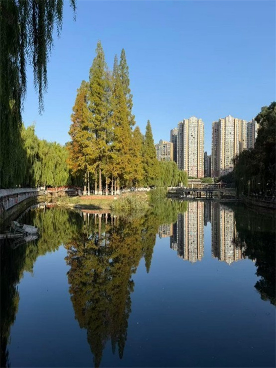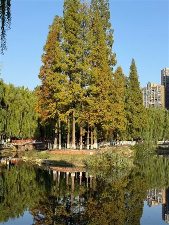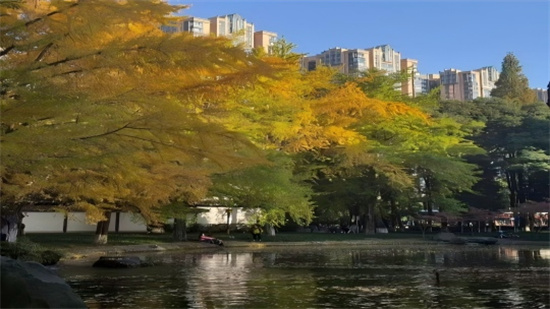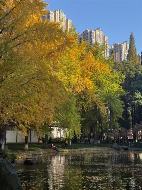 踩着秋末的尾巴,记录下这一树树灿烂的金黄。阳光透过枝叶洒下斑驳光影,飘黄的银杏,是秋日写给成都的一封浪漫情书。(拍摄于温江公园 图/牟钇燃 文/杨浩)