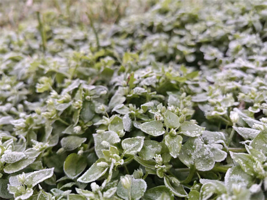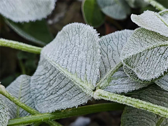 今天是“冬三九”入九,中国传统农历年中的某一时段,也称“三九天”,指冬至后的第三个“九天”,一般出现在冬至到大寒,在一年之中是最冷的。在广元利州近期连晴趋势下,日出前后的清晨冷寒逼人,土地和农作物上都覆着一层白白的霜。(摄于2026年01月08日,拍摄地点:广元市利州区城区,图/文:罗江涛)