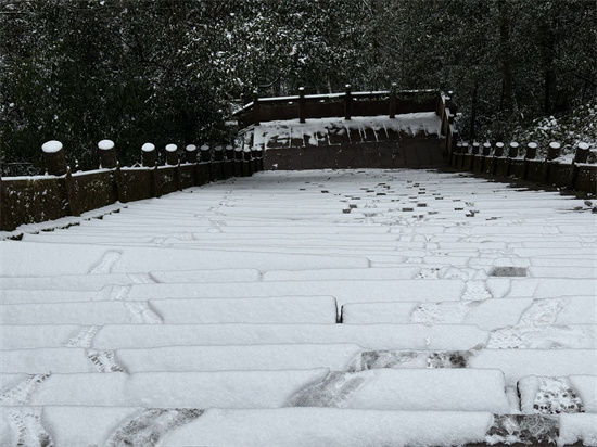 2026年伊始,雅安蒙顶山迎来今冬首场降雪。清晨时分,细密的雪粒便裹满山间石阶,层层叠叠的台阶被厚雪铺成一条蜿蜒的“素色长绸”,零星脚印在雪面上拓出深浅不一的纹路;沿阶的木质护栏与石质望柱覆着 ...