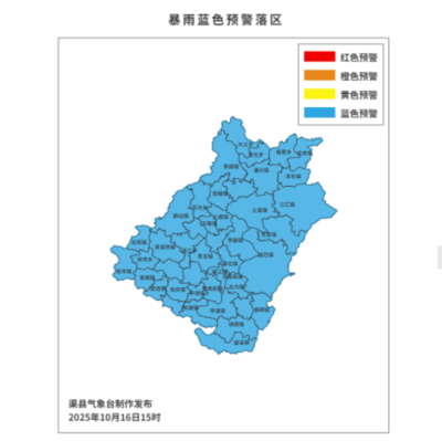 近段时间,我县以阴雨天气为主。2025年10月16日15时34分我台发布暴雨蓝色预警,预计16日晚上到17日白天我县将出现一次强降水天气过程,全县有大到暴雨(30~80毫米),局地大暴雨(100毫米以上),最大小时雨强20~40毫米,强降水主要集中在16日晚上到17日上午,过程中伴有短时强降水、雷电、阵性大风等强对流天气,17日山口河谷地区有6级以上偏北大风。