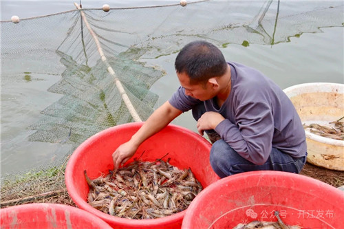 据悉,罗氏沼虾对水温、水流及水中溶氧量等变化敏感,开江“三分微水七分田”的地貌、24-30℃的水体温度、光照充足等优异自然条件,为罗氏沼虾打造了天然的生长乐园。