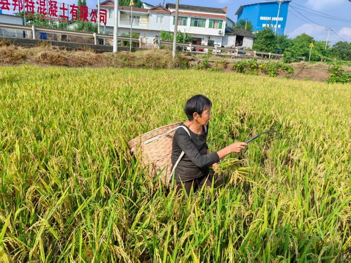 10月15日,天空晴朗、阳光普照,非常适合再生稻收晒。在富顺县随处可见农民们忙碌收割再生稻的 ...