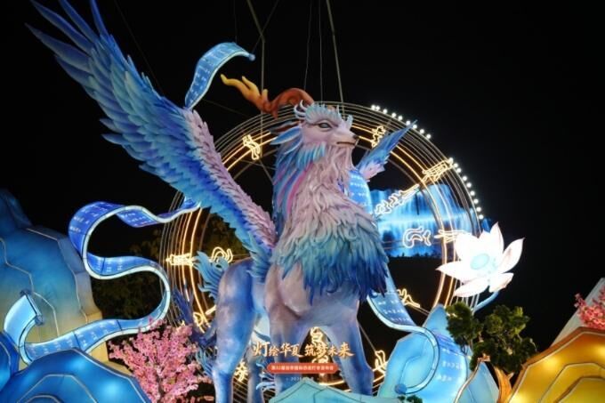 今年,灯会更注重以灯为媒、以光叙事,让彩灯“讲好中国故事”。取材《庄子》的“神奇华夏”灯组长达210米,以鲲鹏之姿展现强国气象与民族豪情;为迎接农历马年打造的“木兰传奇”灯组长达180米,将木兰英姿与骏马奔腾巧妙融合,传递不让须眉的家国情怀;高35米的“华结映门”以中国结为创意,首次实现正背面视觉统一,宛如连接古今的时空之门;搭载AI交互系统的“年年招财”年兽灯组,可实现瑞兽与游客的趣味对话,让传说走进现实。